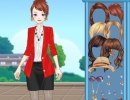 画面上にある髪型、リボン、洋服などをマウスで直接移動させて着せていこう。