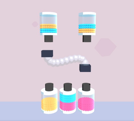 Play Nowよりゲームスタート。クリックでチューブを掴み、ボトルに入っているボールを吸い込んで、すべて同じ色のボールで統一する事ができるとステージクリア。クリアが難しいステージの場合は、広告を見る事で左下の「SKIP」よりスキップすることができます。