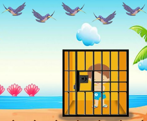 ビーチのオリに閉じ込められている少年を助け出す脱出ゲーム。
