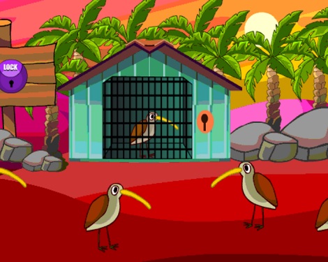 オリに閉じ込められている赤ちゃんのツルを助け出す脱出ゲーム。