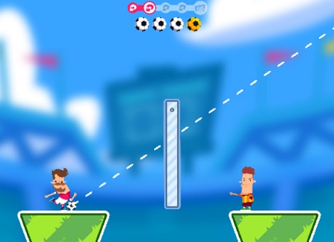 プレイボタンよりゲームスタート。マウスクリック押しっぱなしでシュートをする角度と強さを調整して、ボールを敵にぶつけて倒していくのが目的。ステージによっては、ボールをゴールにシュートするステージもあります。