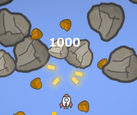 スペースキーで2発ショットしてゲームスタート。スペースキーでショットをして小さな隕石を破壊すると、破片が飛び散り他の隕石に当たると連鎖させる事ができます。またショット数は5回と制限されていて、時間と共に回復していきます。